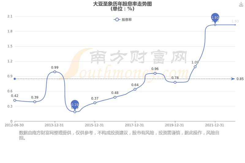 大亚圣象最新一次公布的分红方案:10派1.6元。