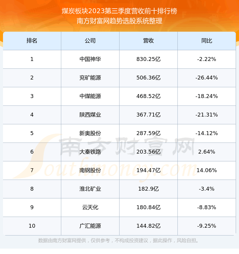 按照趋势选股系统统计,该股所属板块为煤炭板块,该板块共有66只股票,广汇能源2023第三季度营收在该板块中排名为第10名,该板块2023第三季度营收排名前十的股票如下表: