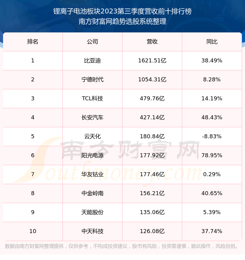 按照趋势选股系统统计,该股所属板块为锂离子电池板块,该板块共有137只股票,帕瓦股份2023第三季度营收在该板块中排名为第137名,该板块2023第三季度营收排名前十的股票如下表: