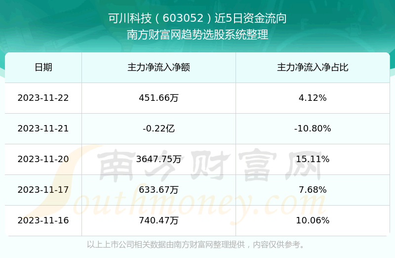 二、可川科技(603052)近期盘面、资金面情况