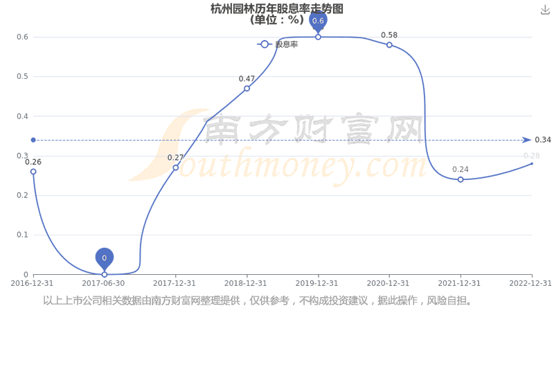 近年杭州园林年度股息率走势如下图: