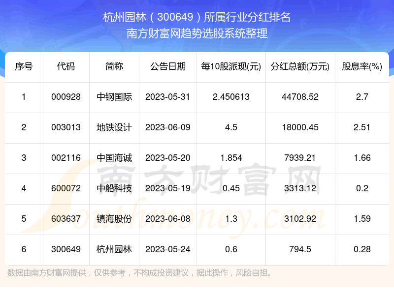 二、杭州园林300649行业分红排名