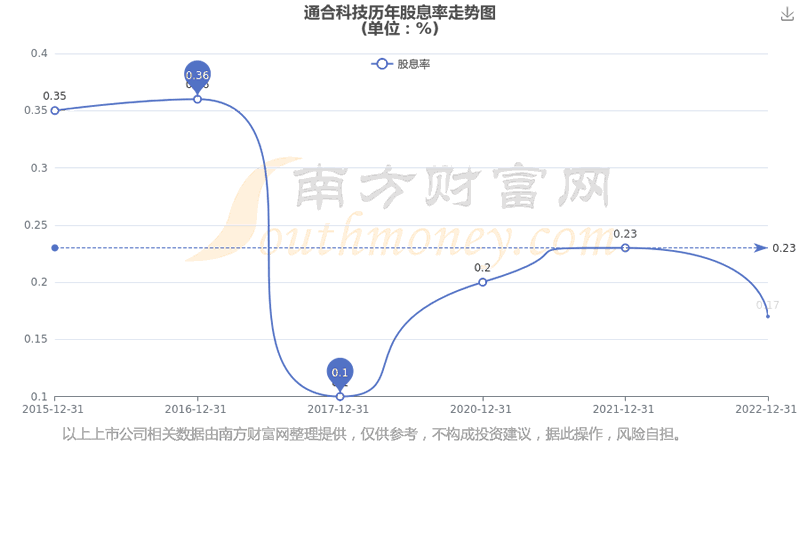 通合科技最新一次公布的分红方案为10派0.5元。本次权益分派股权登记日为2023年5月31日,除权除息日为2023年6月1日,派息日为2023年6月1日。