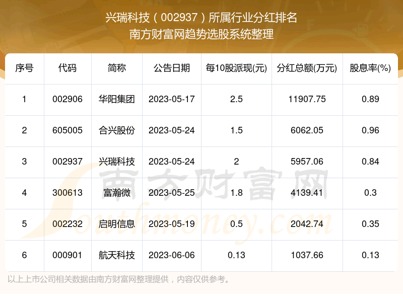 二、兴瑞科技002937行业分红排名