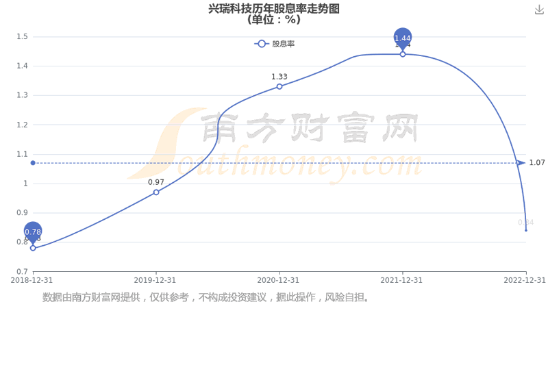 近年兴瑞科技年度股息率走势如下图: