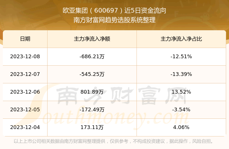 二、欧亚集团(600697)近期盘面、资金面情况