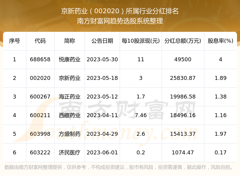 二、京新药业002020行业分红排名