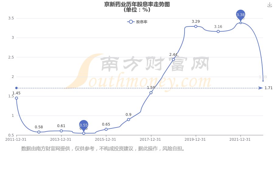 近年京新药业年度股息率走势如下图: