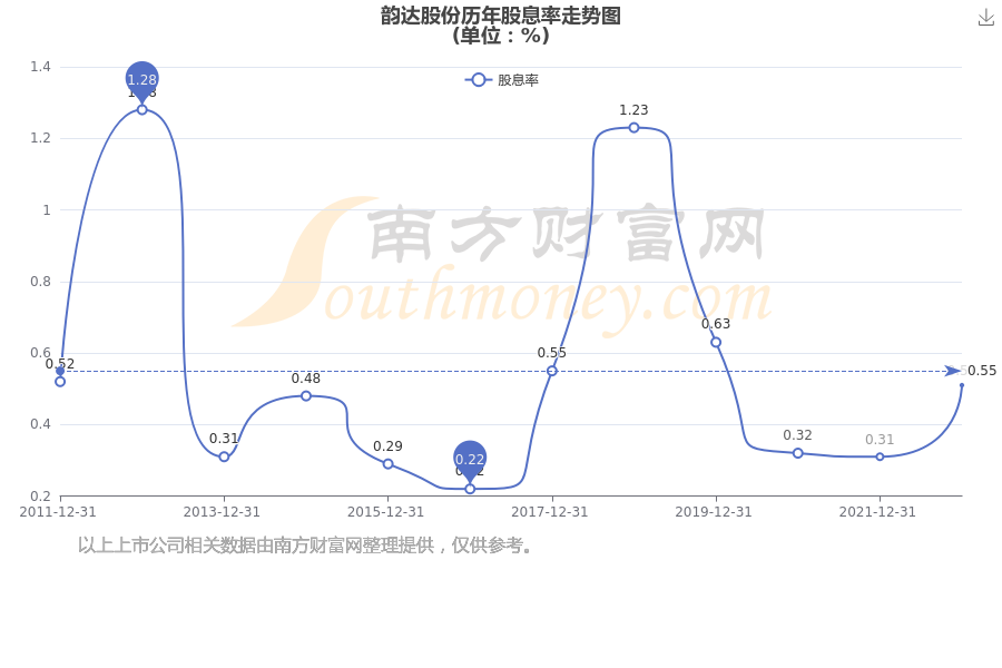 近年韵达股份年度股息率走势如下图: