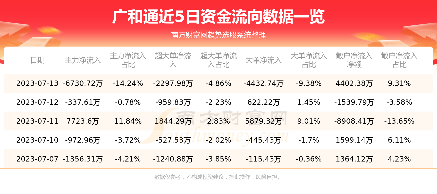 7月13日消息,广和通7月13日主力资金净流出6730.72万元,超大单资金净流出2297.98万元,大单资金净流出4432.74万元,散户资金净流入4402.38万元。