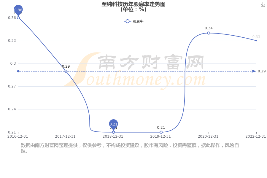 近年至纯科技年度股息率走势如下图: